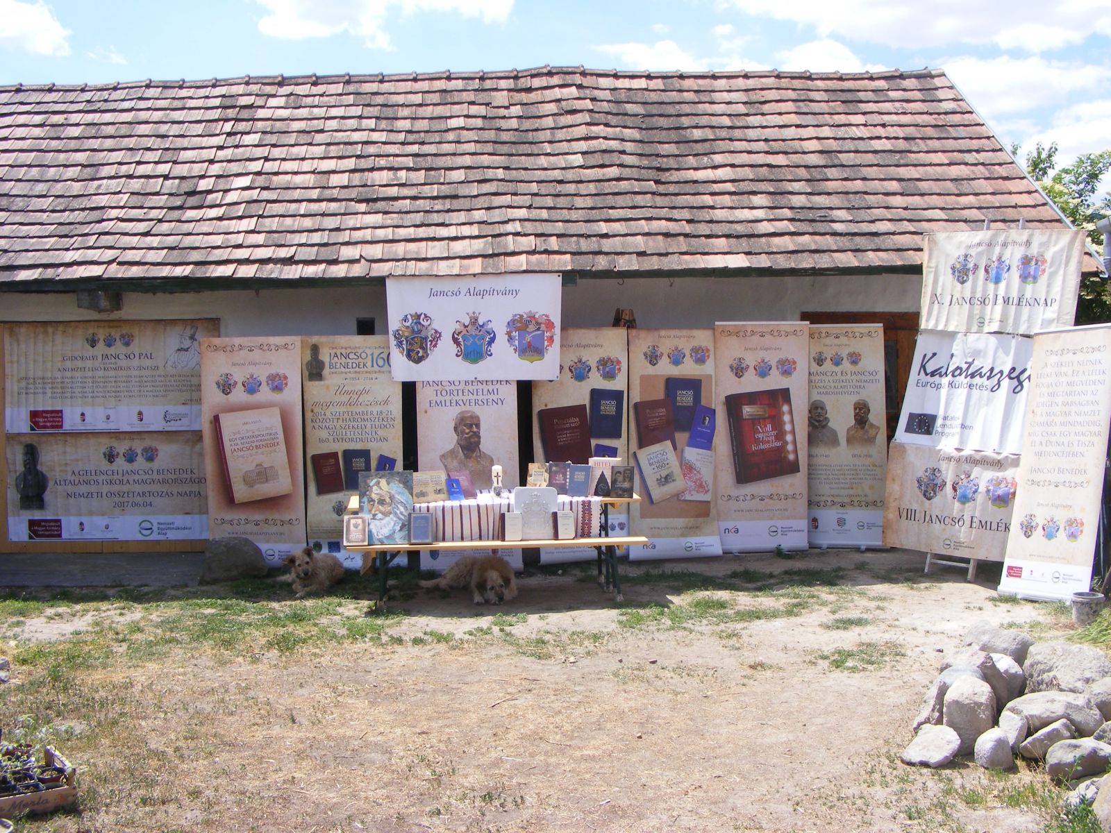 A tíz év közös munkájának és eredményeinek teljes körű összefoglalása helyett egy fényképet készítettem, amelyről rengeteg minden felidézhető. Az asztalon középen a Jancsó Imre atya által szentelt gyertya látható a három Jancsó címerrel. Mellette az általunk kiadott könyvek, továbbá az 1931-ben megjelent Jancsó Benedek emlékkönyv és Szentkatolnai Bakk Endre kanonok úr 1800-as évek végén megjelent két könyve a Jancsó családok genealógiájával. Ott van a nyújtódi Jancsó család címere gipszből és a gelencei-nyújtódi Jancsó Péter bácsi portréja, amelyet Jancsó Zoltán festőművész adományozott Alapítványunknak. Az asztal köré felállított plakátokról felidézhető az a sok szép emlék, amit közösen átéltünk az erdélyi utazások, ünneplések, könyvbemutatók és egyéb alkalmak során.