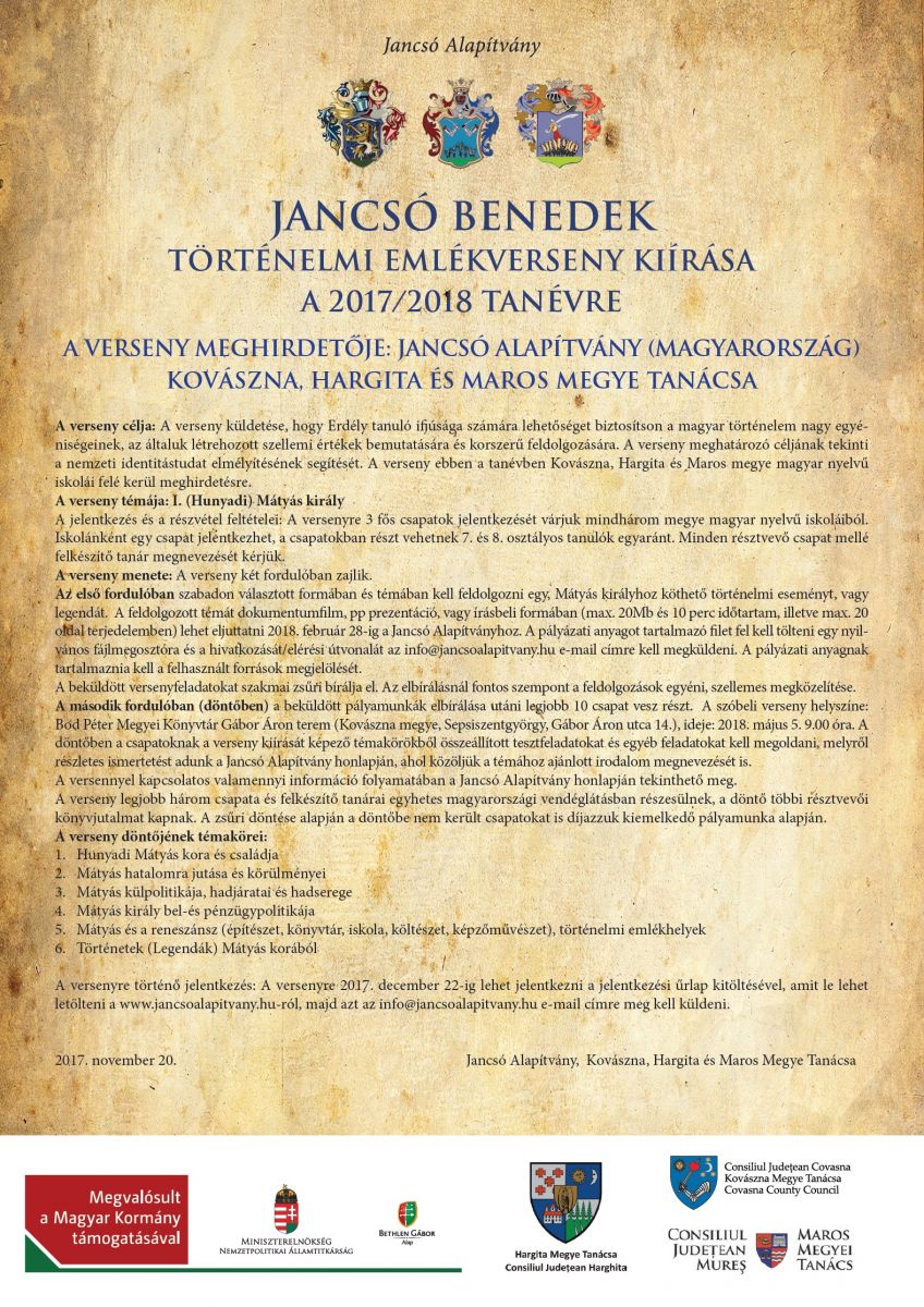 Jancsó Benedek történelmi emlékverseny 2017/2018